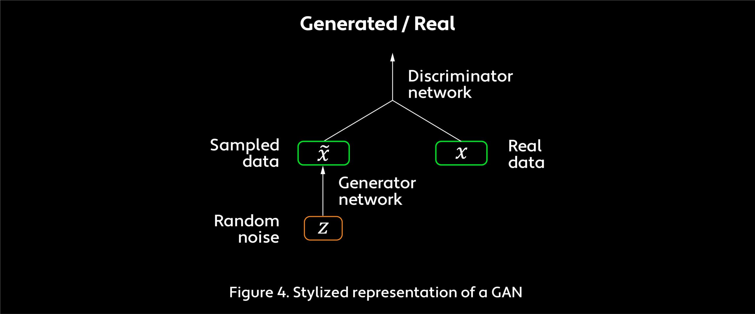 Larsen’s group combined the VAE decoder network and the GAN generator network into one component (see Figure 4). Like VAEs, GANs learn to generate samples that probabilistically resemble training data. Unlike VAEs, however, GANs assess the generator network by its performance competing against an opponent known as a discriminator network. Both the generator and the discriminator are neural networks. Training GANs is essentially a zero-sum game. The generator network aims to produce data that is indistinguishable from the original input data, while the discriminator network attempts to separate generated data from original data. As a seminal 2014 paper on GANs by Ian Goodfellow, a former researcher on the Google Brain project and today director of machine learning at Apple’s Special Projects Group, and his colleagues suggests,7 the generator network resembles a group of counterfeiters trying to produce fake currency without being detected, and the discriminator network acts like police tracking down fakes. Both the counterfeiters and the police improve during the game. What matters in the end are the counterfeiters, who have created an excellent way to print currency essentially indistinguishable from the real thing.